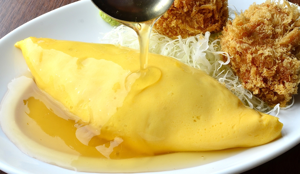 仕上げには鰹と昆布の旨味が凝縮された香り高い和風だし餡をたっぷりとかけた和風オムライス。